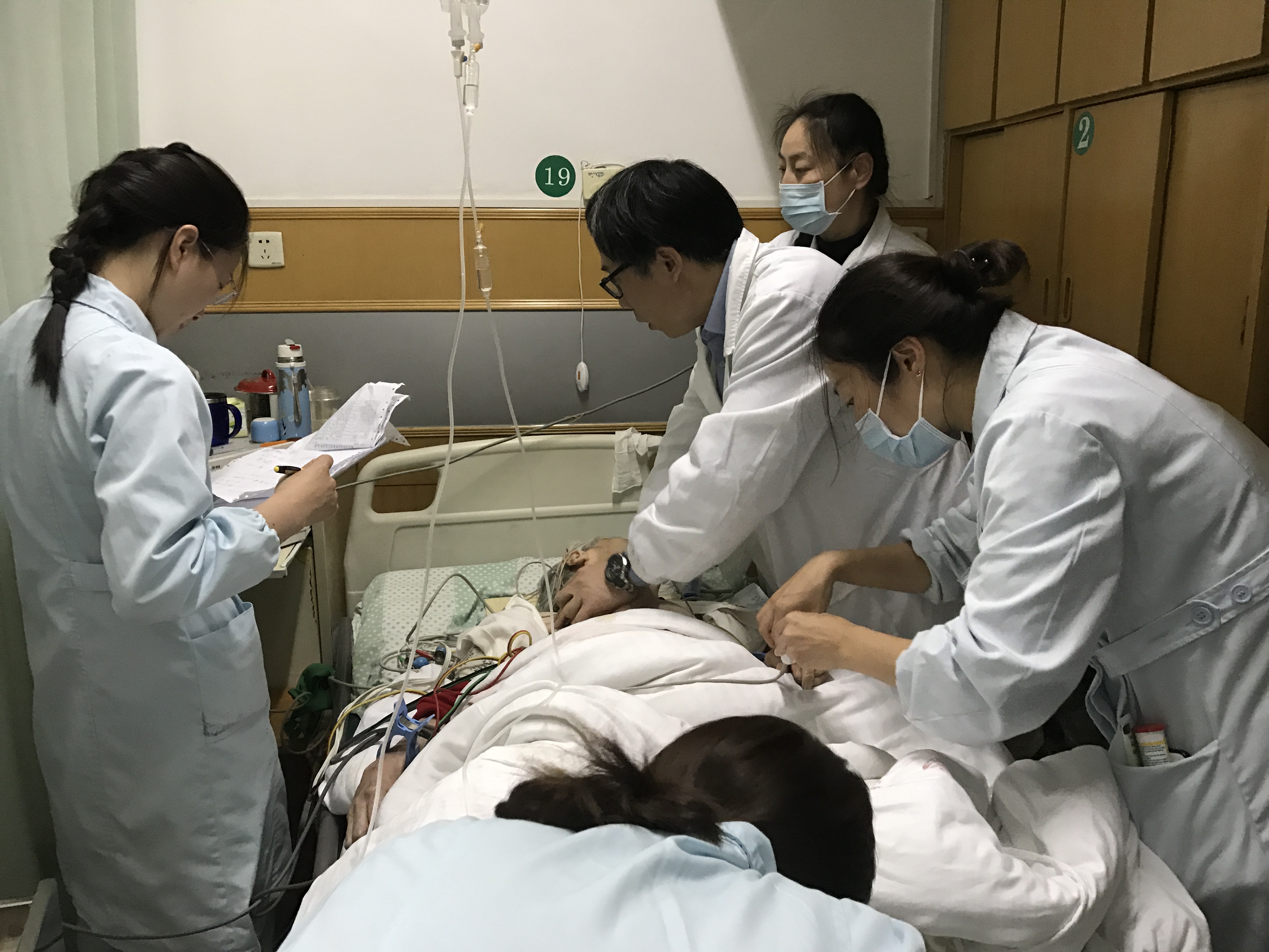 医护人员在第一时间进行了气管插管,进行了三次电击除颤,使用了肾上腺素等药物,坚持了1个多小时的心肺复苏,患者心跳呼吸恢复自主,成功转入了上级医院。