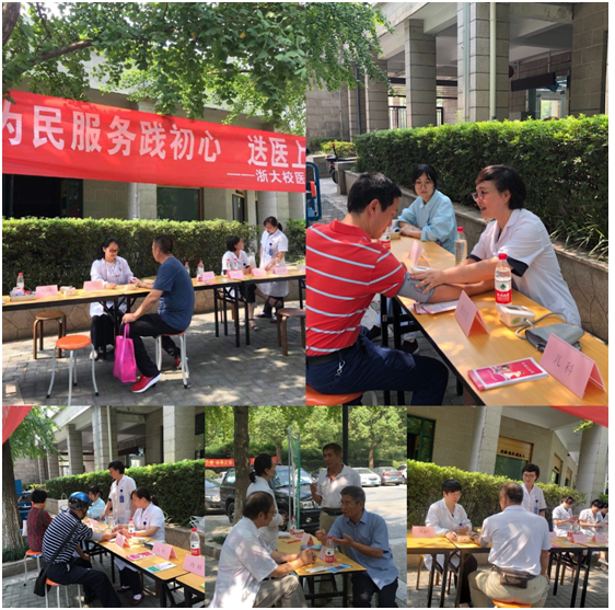 为深入学习和贯彻党的十九大精神,深刻领会习近平新时代中国特色社会主义思想,“不忘初心、牢记使命”为新中国成立70周年献礼,同时进一步提高党员联系群众的能力,树立党员的良好形象,拓展党员服务群众、服务基层的渠道。2019年9月29日中午,浙江大学校医院紫金港分院在职党支部组织党员走进紫金文苑社区,开展以“为民服务践初心 送医上门护健康”为主题的党员活动,为社区群众进行义诊和健康宣教。